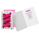 W zestawie znajduje się również kolorystycznie dopasowana koperta, z miejscem na zaadresowanie, dzięki czemu karta jest gotowa do wręczenia.