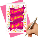 Nasza karta na Dzień Matki zawiera piękne życzenia wewnątrz, które doskonale wyrażą Twoje uczucia i wdzięczność za wszystko, co Mama robi na co dzień. Dodatkowa wolna przestrzeń pozwala na własnoręczne dopisanie życzeń prosto z serca.