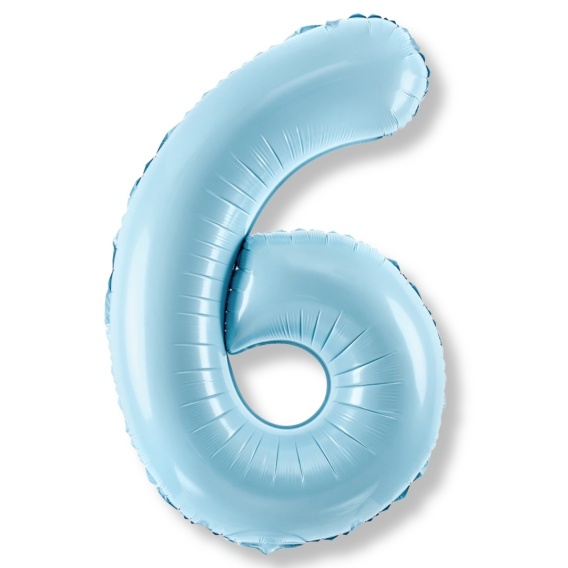Balon foliowy cyfra „6” w kolorze jasnoniebieskim to stylowa i uniwersalna dekoracja, która doda świeżości i radosnego charakteru każdej uroczystości.