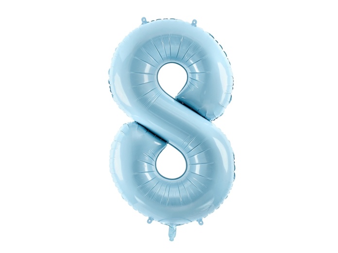 Balon foliowy cyfra „8” w kolorze jasnoniebieskim to stylowa i uniwersalna dekoracja, która doda świeżości i radosnego charakteru każdej uroczystości.