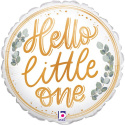 - Złoty napis: „Hello Little One” w eleganckim stylu podkreśla wyjątkowość okazji.
