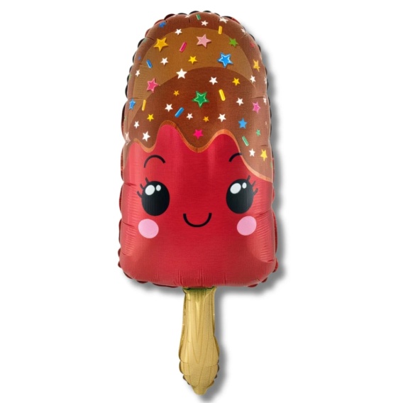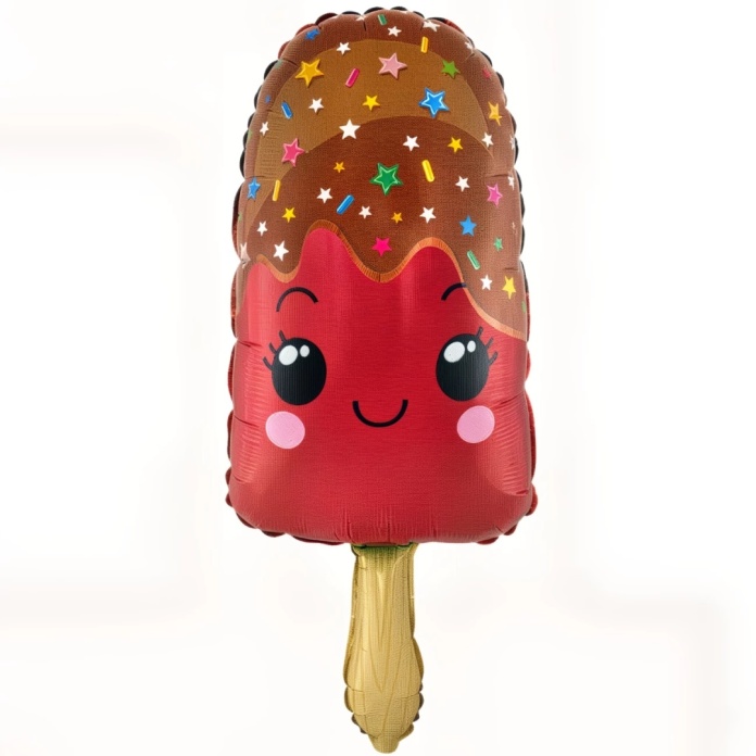 Ten foliowy balon w kształcie uśmiechniętego loda na patyku, z czekoladową polewą, kolorową posypką i wesołą buźką, to idealny dodatek do dziecięcych urodzin, letnich imprez, garden party czy przyjęć tematycznych. Napełniony helem lub powietrzem zachwyca każdego – unosi się w powietrzu lub świetnie wygląda jako dekoracja stołu.
