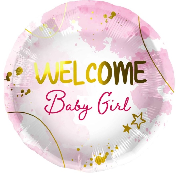 Balon foliowy w kształcie okrągłym, z napisem „Welcome Baby Girl” to piękna dekoracja, która świetnie sprawdzi się podczas baby shower i powitania nowo narodzonej dziewczynki. 👶💖