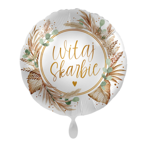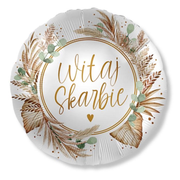 Szukasz eleganckiej dekoracji na powitanie noworodka lub bliskiej osoby? Ten okrągły balon foliowy w białym kolorze, ozdobiony delikatnym motywem roślinnym w stylu boho i napisem „Witaj skarbie”, to idealny wybór. Utrzymanyw neutralnej, stonowanej kolorystyce, świetnie sprawdzi się niezależnie od płci dziecka. Satynowe wykończenie nadaje mu elegancji, a wysoka jakość zapewnia trwałość i piękny efekt.