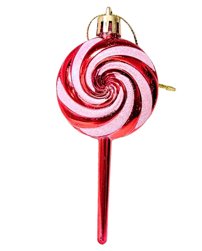 Intensywna czerwień połączona z różowo-białym brokatowym wzorem przyciąga wzrok i przywołuje skojarzenia z kolorowymi słodyczami z zimowego jarmarku. Każdy lizak ma 11,5 cm wysokości, dzięki czemu pięknie prezentuje się na drzewku – zarówno dużym, jak i mniejszym.