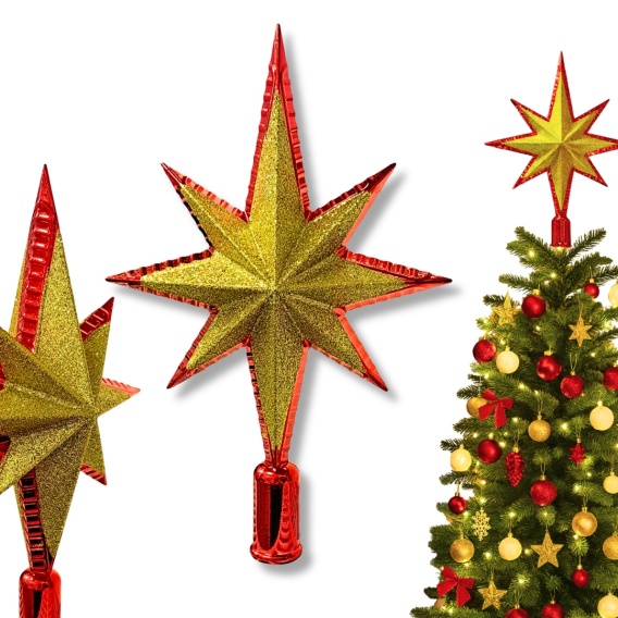 - ✨ Imponujący wygląd: Połyskująca faktura i złoty brokat nadają gwieździe wyjątkowy, luksusowy efekt.