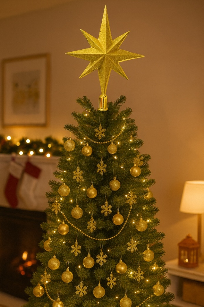• Czub choinki: Idealna gwiazda wieńcząca świąteczne drzewko.