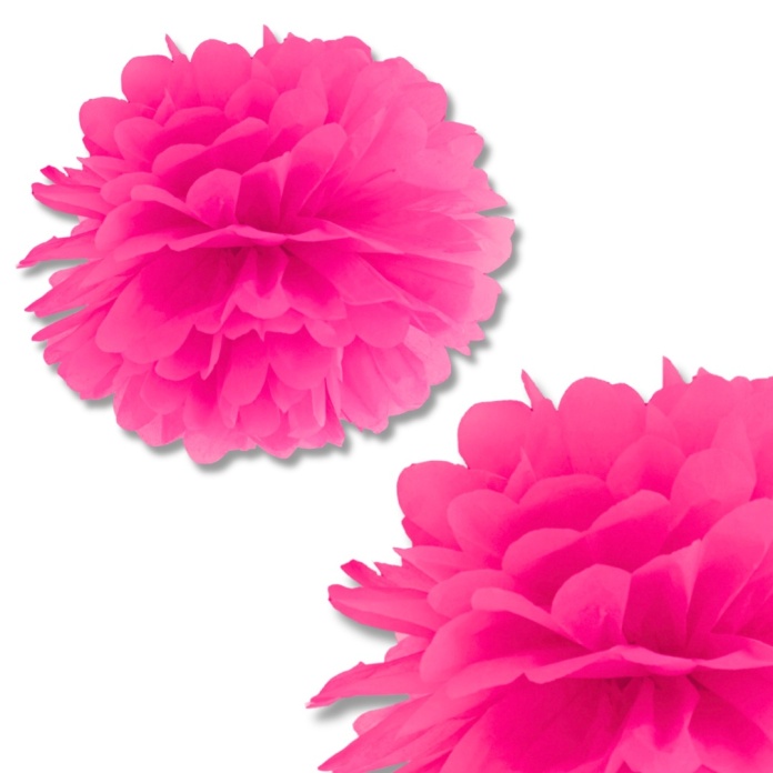 Dzięki intensywnemu odcieniowi różu pompon przypomina kwiatową kulę, która pięknie prezentuje się zarówno zawieszona pod sufitem, jak i ułożona na stole czy w aranżacjach tematycznych.