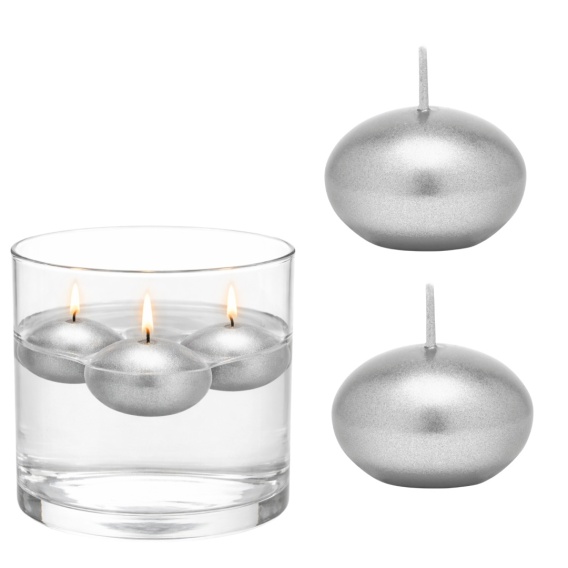 PŁYWAJĄCE ŚWIECE SREBRNE METALIZOWANE 4cm 2 szt. ŚWIECE NA WODĘ