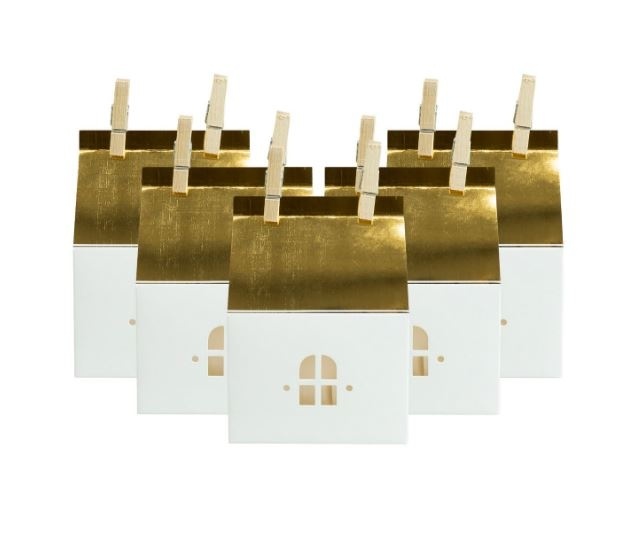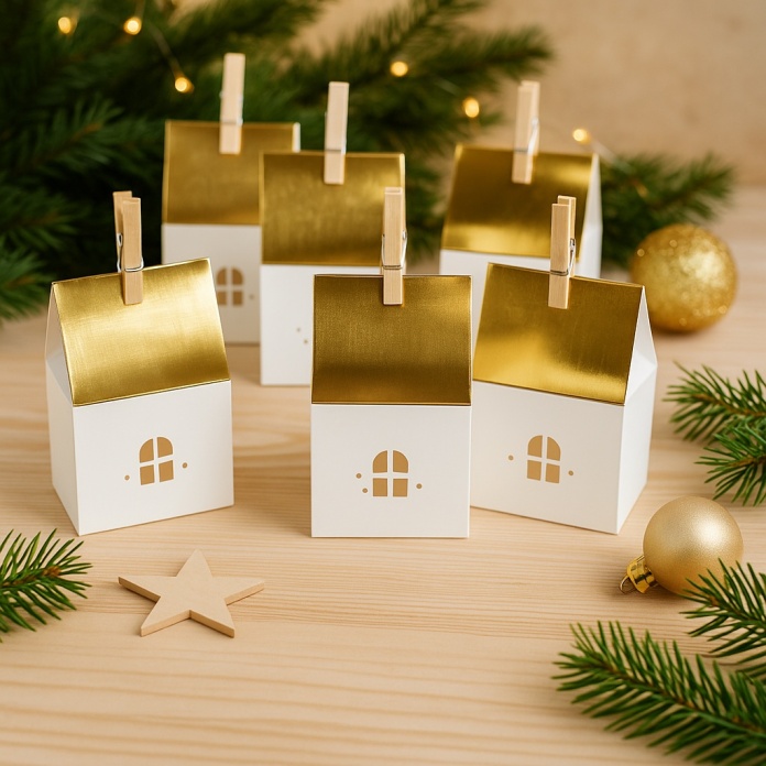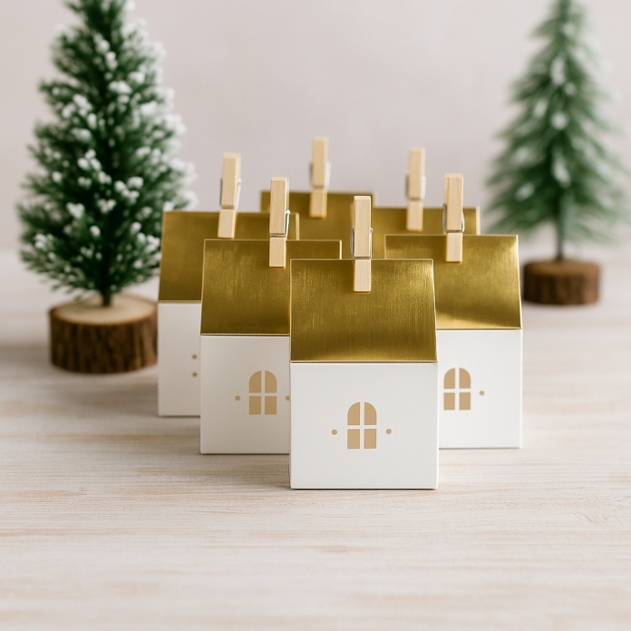 Papierowe domki w złotym wykończeniu to połączenie prostoty i elegancji — idealne, by nadać każdej aranżacji wyjątkowego charakteru! 🎁🌟