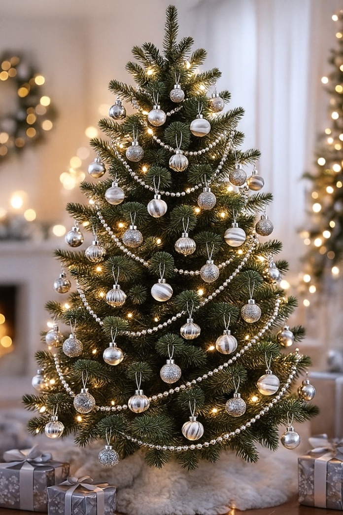 Srebrne bombki to idealny sposób, by wprowadzić do wnętrza odrobinę blasku i świątecznej elegancji.