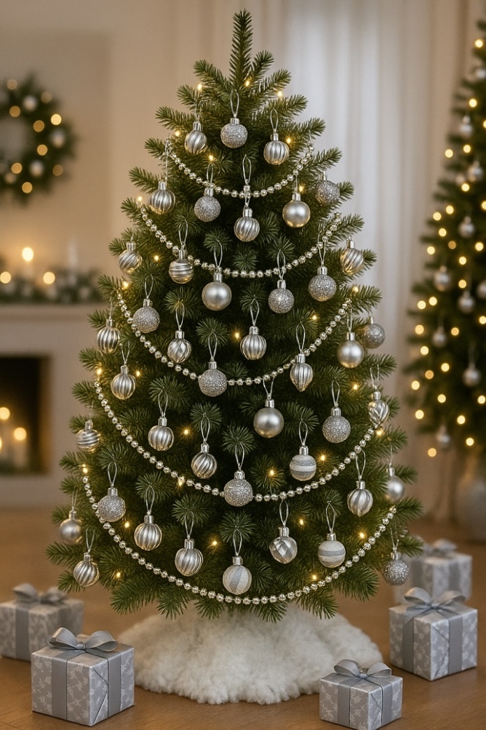 Srebrne bombki to klasyk, który pasuje do każdej świątecznej aranżacji – od eleganckiej, przez skandynawską, aż po nowoczesną. 🎄