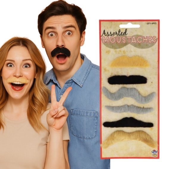 Zestaw wąsów 6 szt. to uniwersalny gadżet, który urozmaici każdą stylizację i rozbawi towarzystwo – klasyka imprezowych dodatków!