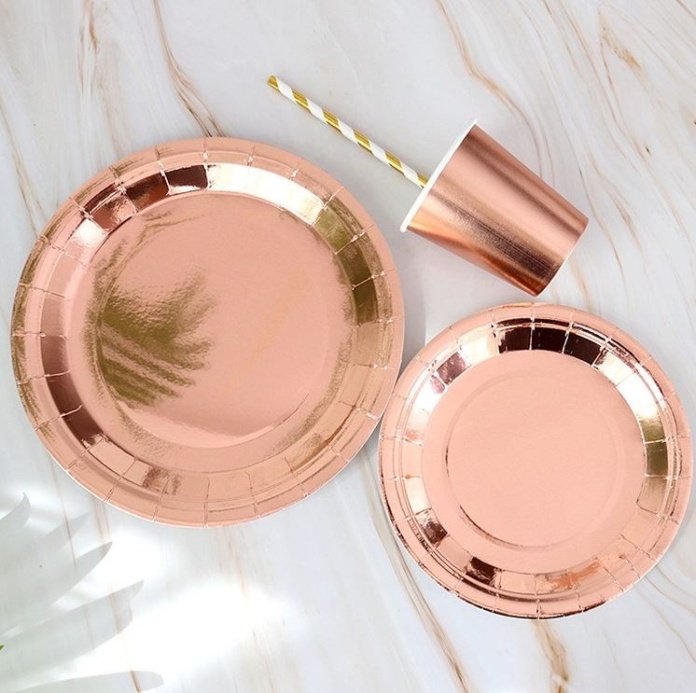 Wybierz zestaw kubeczków i talerzyków w kolorze różowe złoto i spraw, aby Twoja impreza nabrała blasku i elegancji! 🌟