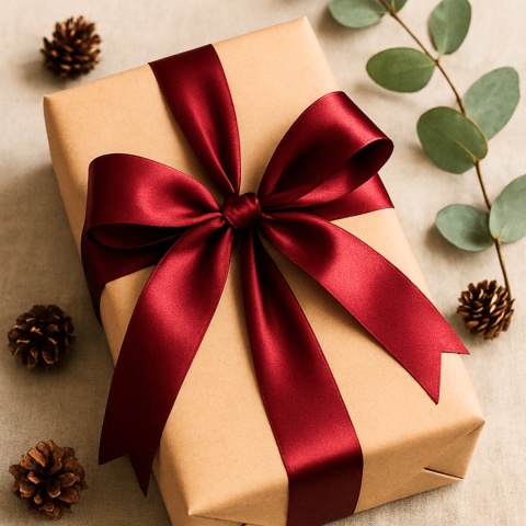 🎁 Pakowanie prezentów – klasyczne kokardy, ozdobne opaski i akcenty na pudełkach,
