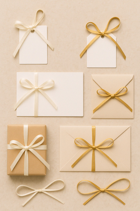🎁 Pakowanie prezentów – klasyczne kokardy, ozdobne opaski i akcenty na pudełkach,