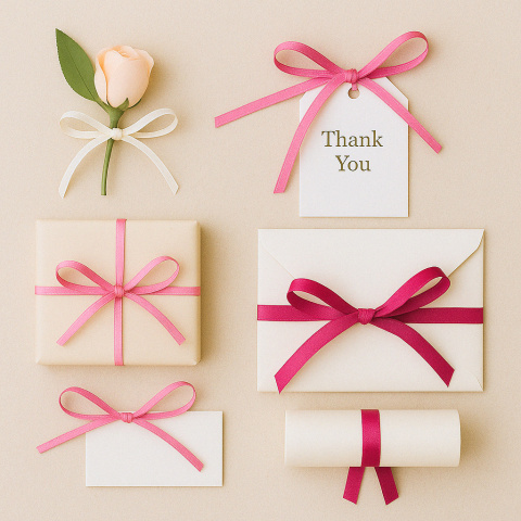 🎁 Pakowanie prezentów – klasyczne kokardy, ozdobne opaski i akcenty na pudełkach,