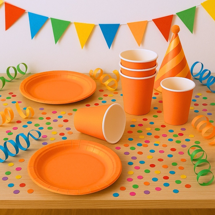 - 🧡 Wyrazisty kolor, który przyciąga wzrok: Pomarańczowy to barwa energii, zabawy i ciepła – idealna na radosne i dynamiczne przyjęcia.