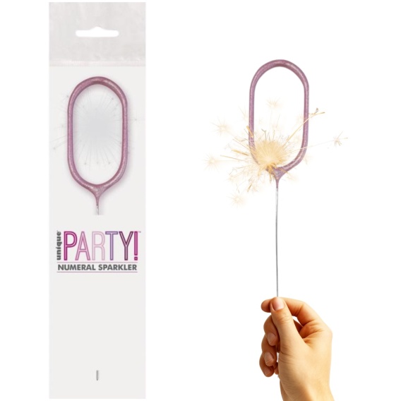 Zimny ogień w kształcie cyfry 0 w delikatnym różowym kolorze to elegancka i efektowna dekoracja tortu, która zamieni chwilę zdmuchiwania świeczek w prawdziwe widowisko. To idealny dodatek na urodziny lub jubileusz.