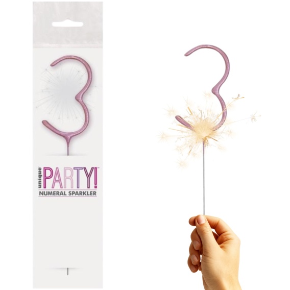 Zimny ogień w kształcie cyfry 3 w delikatnym różowym kolorze to elegancka i efektowna dekoracja tortu, która zamieni chwilę zdmuchiwania świeczek w prawdziwe widowisko. To idealny dodatek na urodziny lub jubileusz.