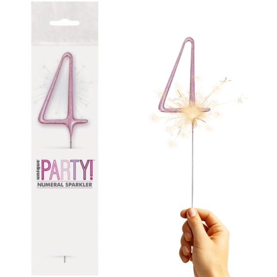 Zimny ogień w kształcie cyfry 4 w delikatnym różowym kolorze to elegancka i efektowna dekoracja tortu, która zamieni chwilę zdmuchiwania świeczek w prawdziwe widowisko. To idealny dodatek na urodziny lub jubileusz.